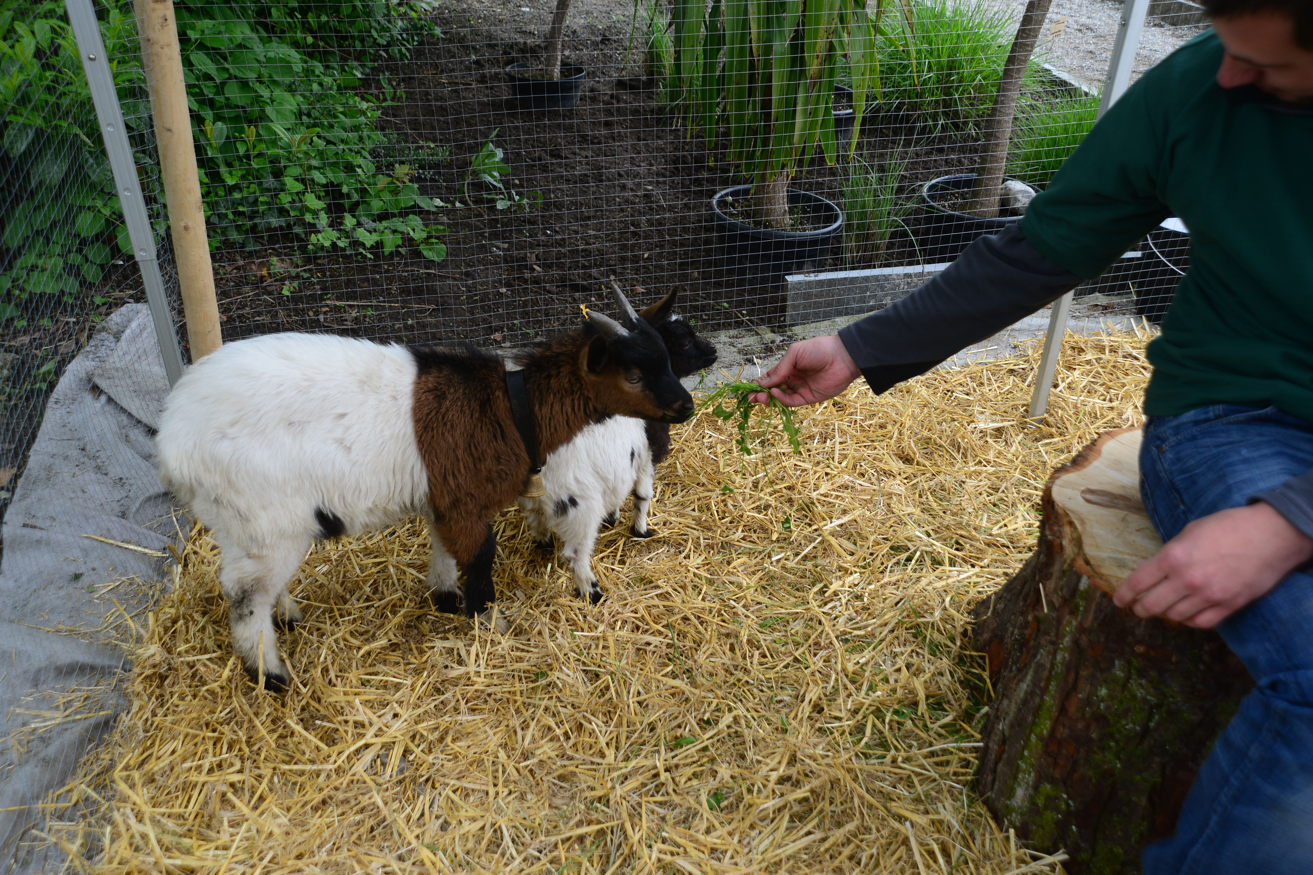 Bereitwillig ließen sich die Zwergziegen füttern.