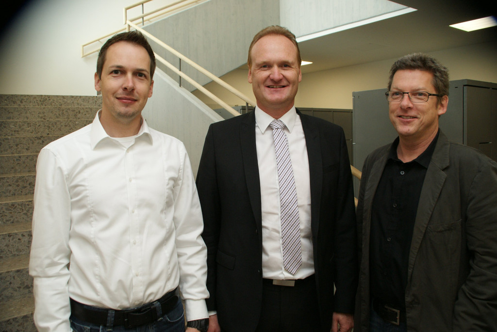 Bauleiter Reinhard Schmelzenbach, Bürgermeister Guido Flatz und Architekt Markus Thurnher