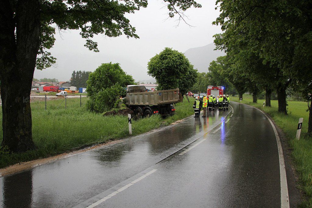 Lkw prallt in Baum