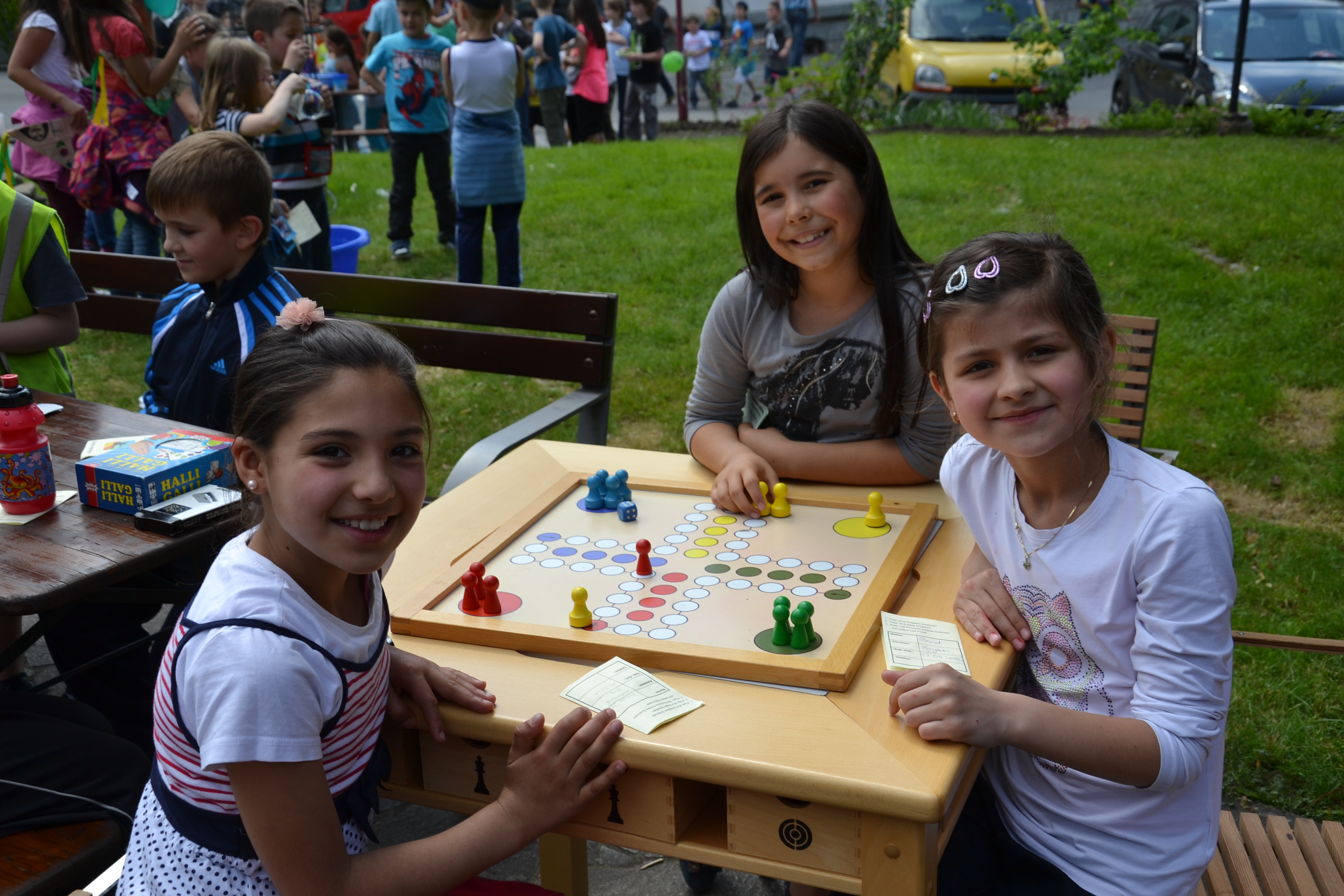 (v.l.) Firdaus, Aylin und Bariel von der VS Götzis Markt unterhielten sich bei "Mensch ärgere dich nicht"