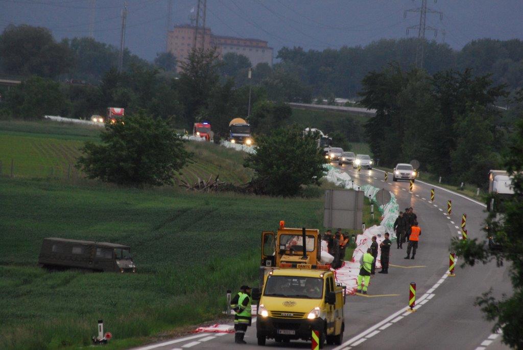 Hochwasser in in Theiss (Krems): Feuerwehr sichert Damm und baut zweite Verteidigungslinie