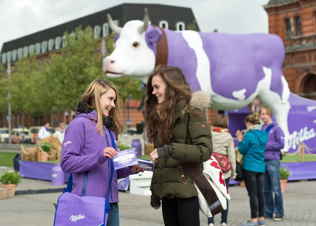 Milka-Städtetour mit lila Riesen-Kuh