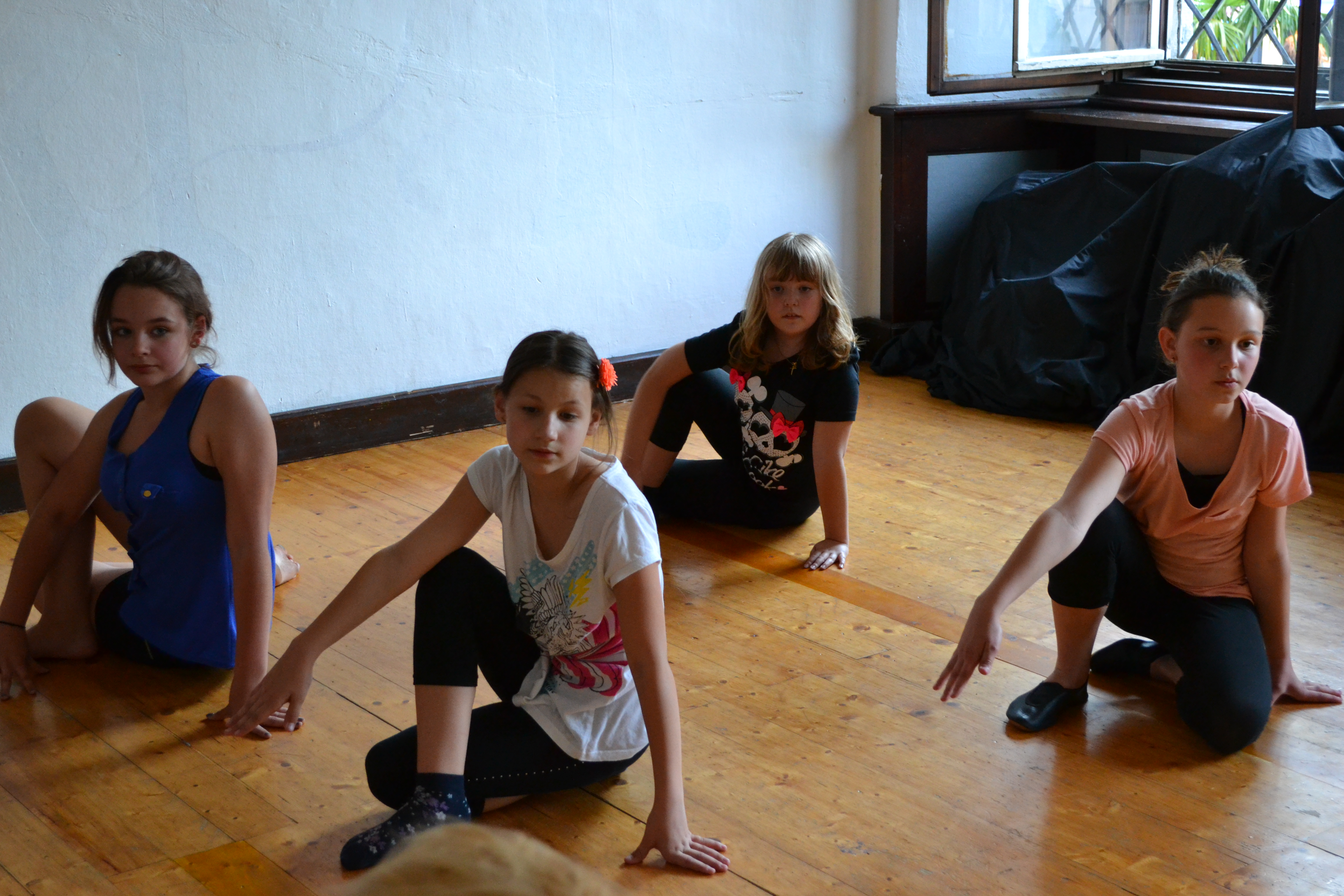 Chantal, Maria-Magdalena, Angelina und Elma bei ihren Dehnungsübungen