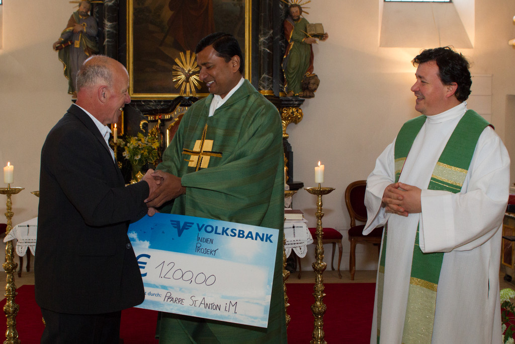 Spendenübergabe an Kaplan Inna Reddy Kolukula, Indien,