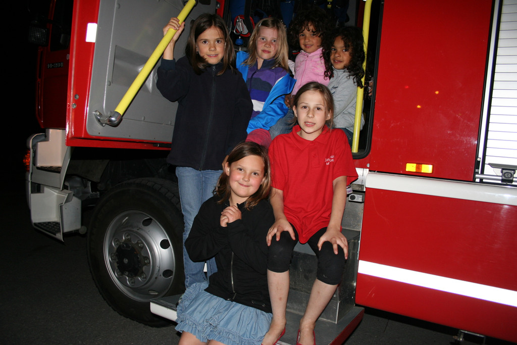 Die Kinder inspizierten die Feuerwehrautos.