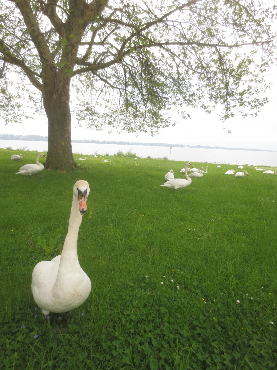 Schwäne am Bodenseeufer als Fotomotiv