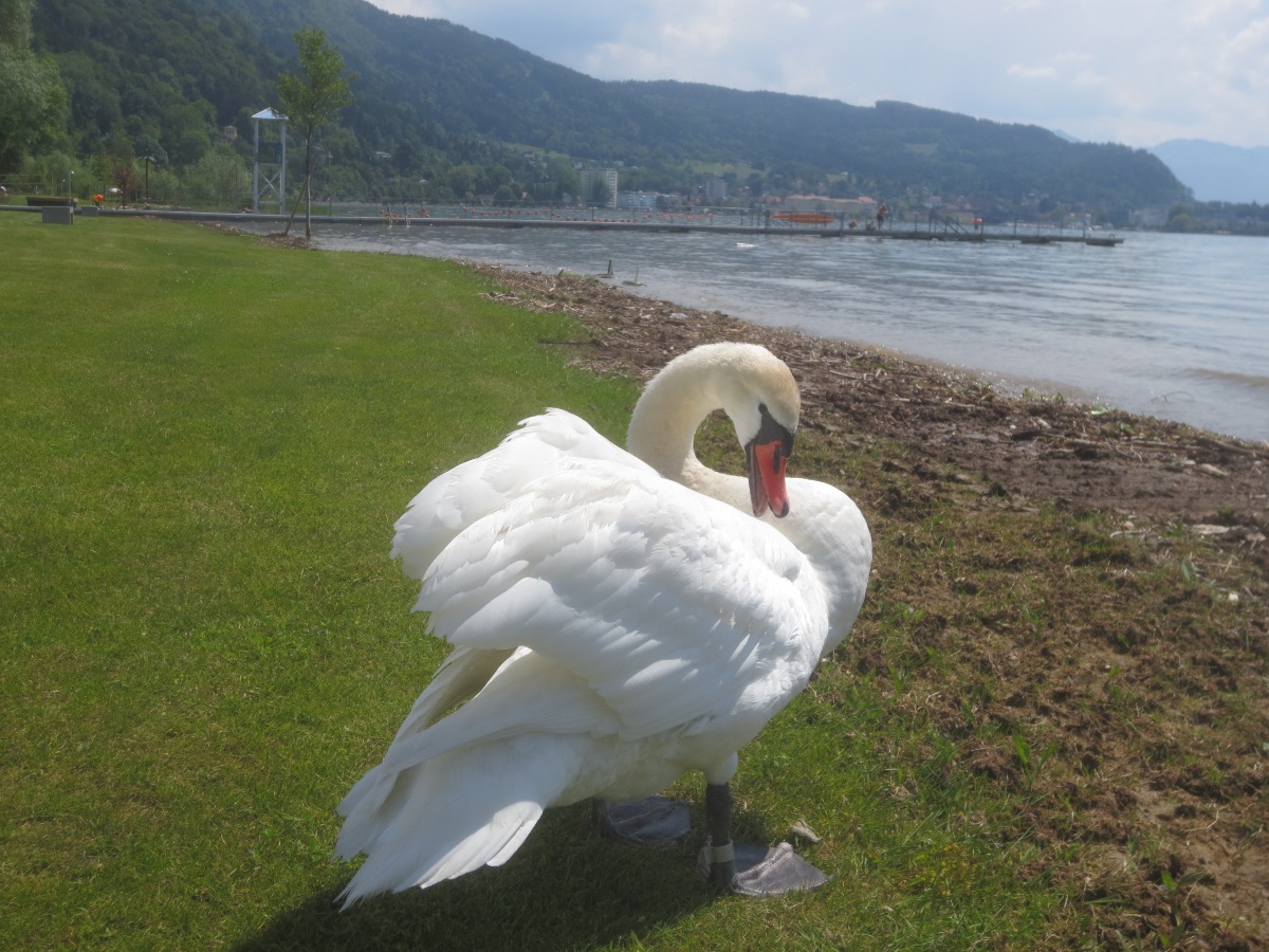 Schwäne am Bodenseeufer als Fotomotiv