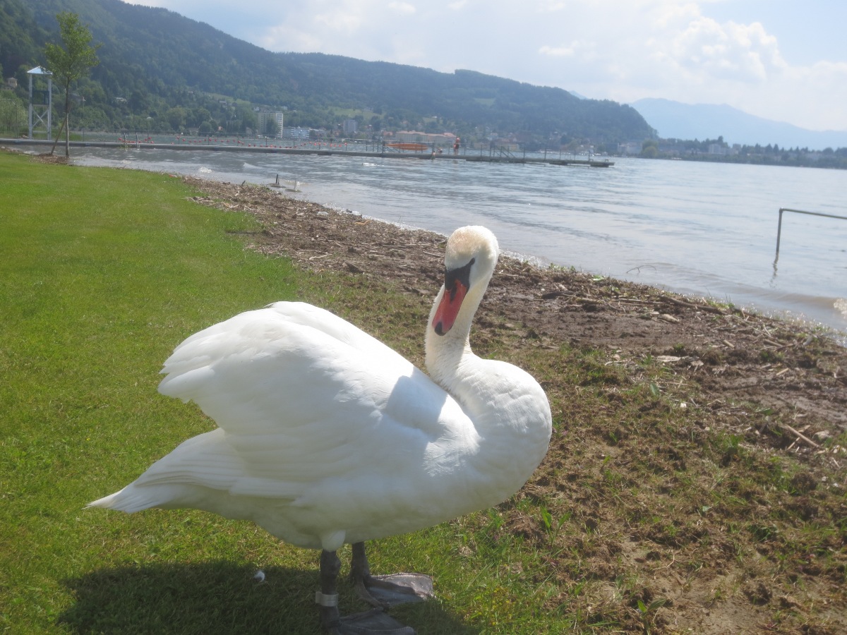 Schwäne am Bodenseeufer als Fotomotiv