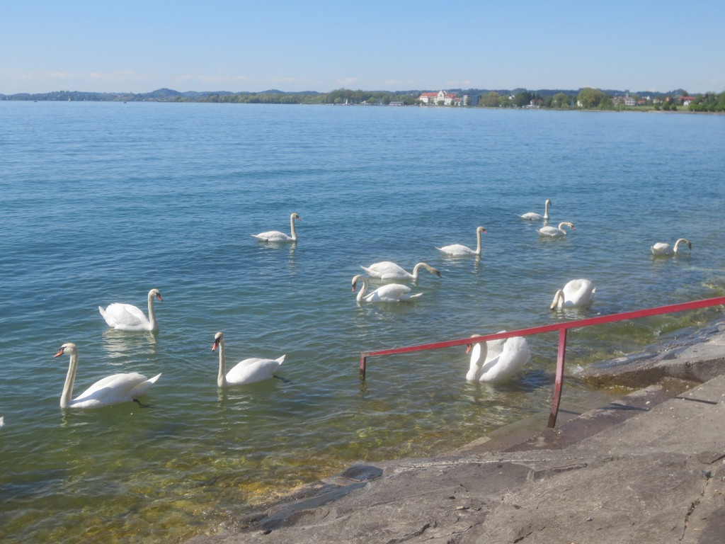 Schwäne am Bodenseeufer als Fotomotiv