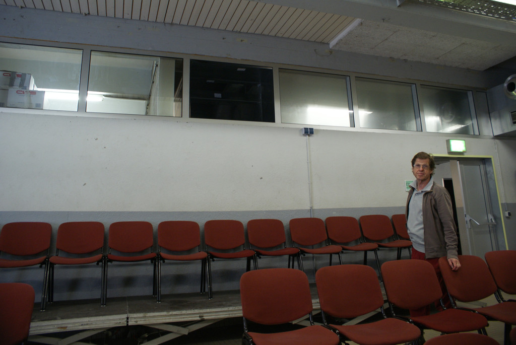 Wolfgang Errath im Pool - durch die Öffnung an der Decke wird die warme und verbrauchte Luft aus dem Pool abgesogen.