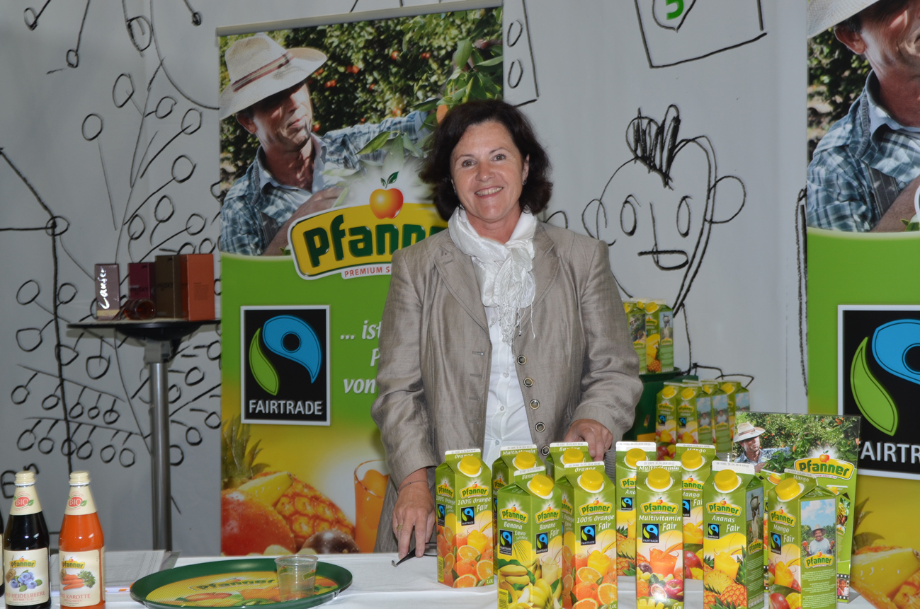 Brunhilde Pfanner kredenzt Fairtrade-Säfte.