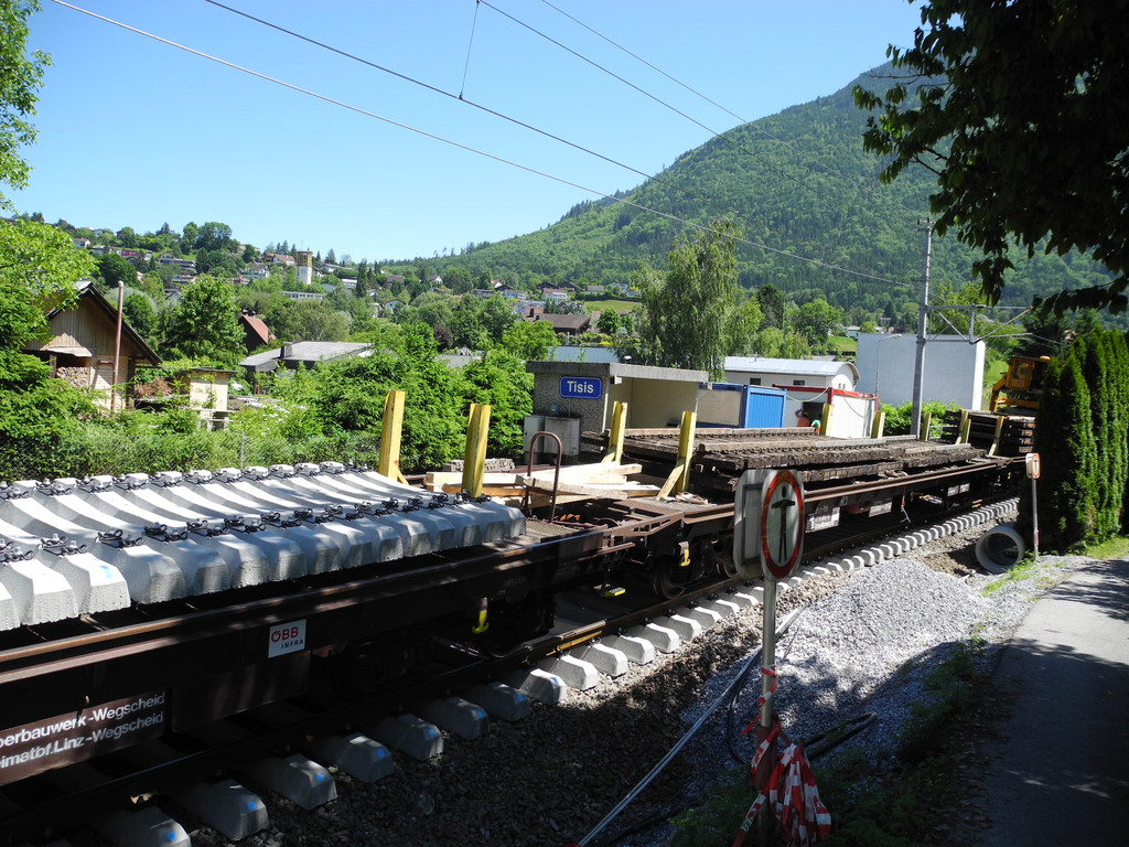 Schienenumbauzug in Aktion