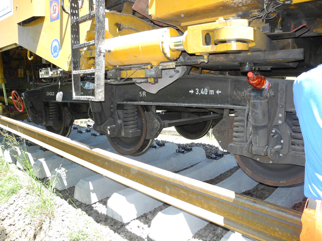 Schienenumbauzug in Aktion