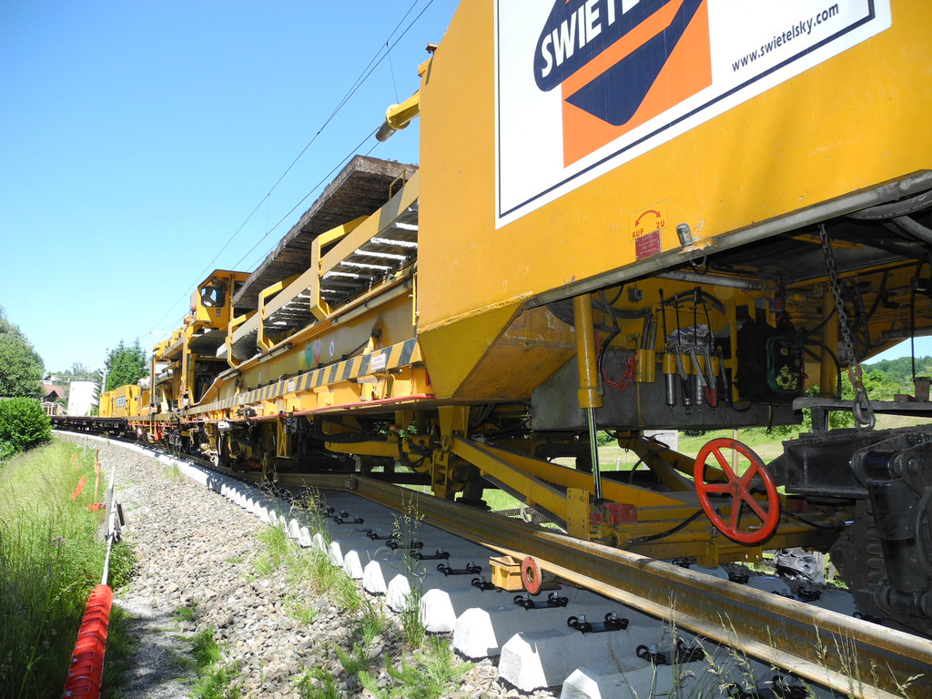 Schienenumbauzug in Aktion