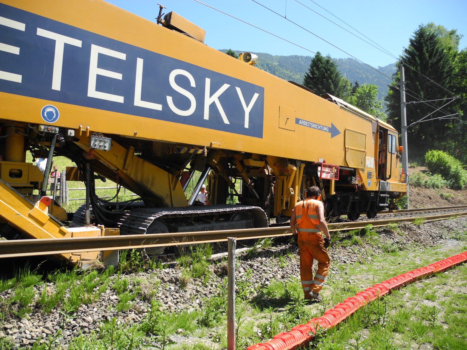 Schienenumbauzug in Aktion