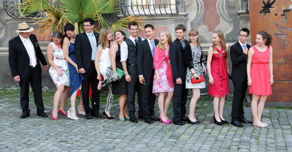 Der Bräutigam mit Schwestern, Cousinen und Cousins