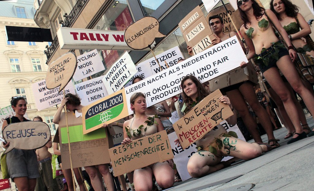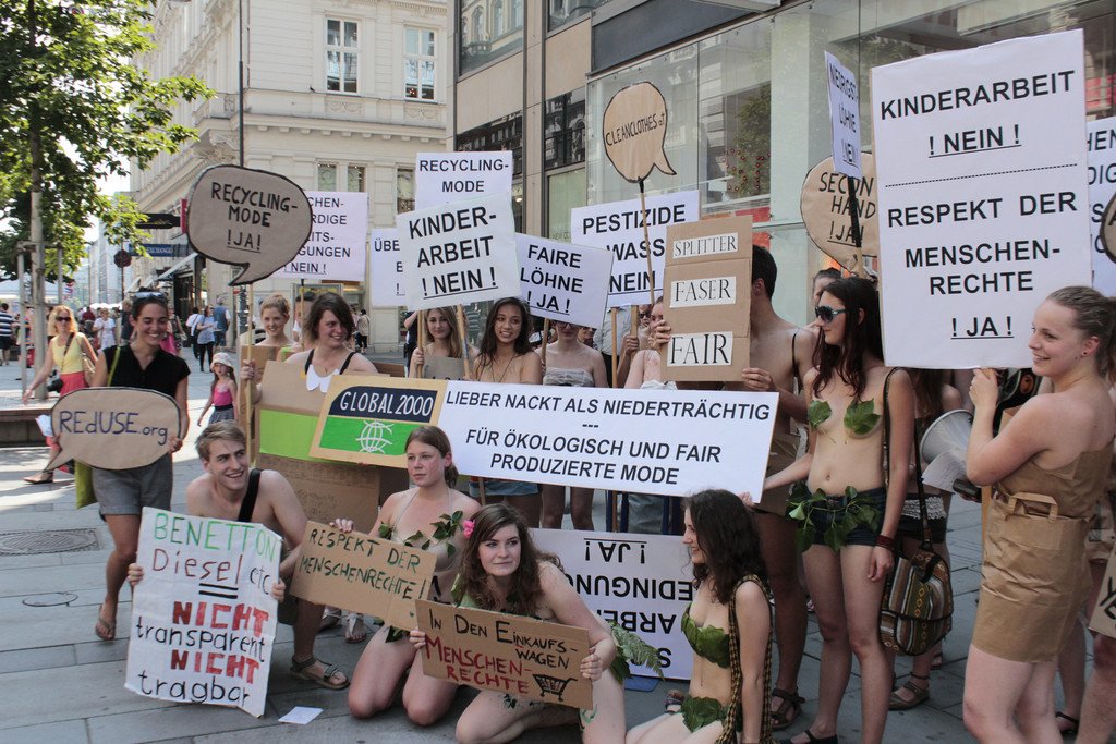 GLOBAL 2000-Halbnackt-Demo für Clean Clothes auf der Kärntner Straße