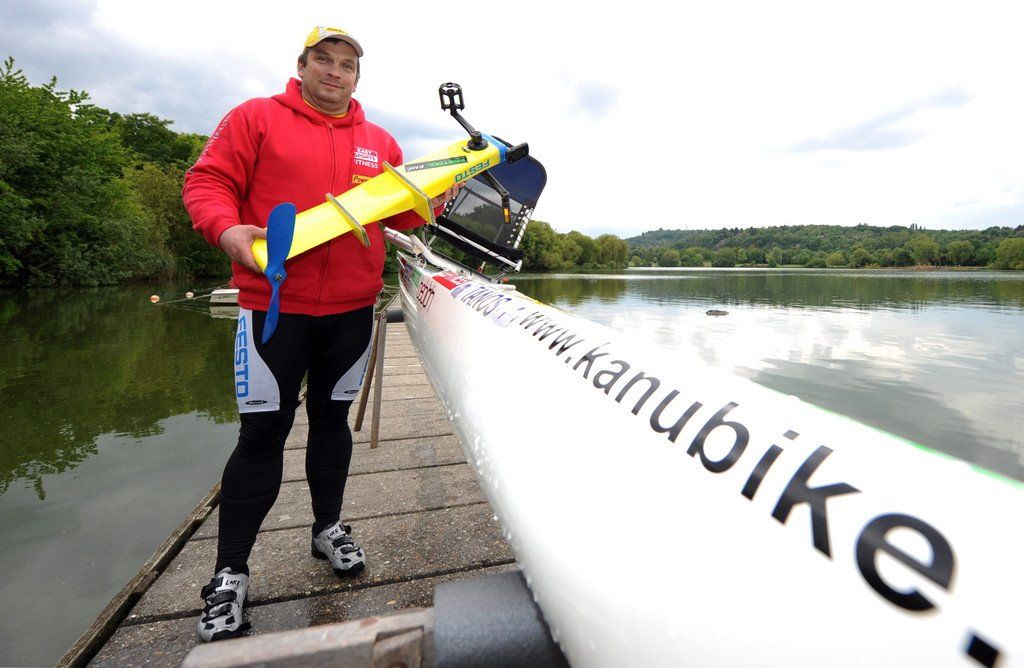 Weltrekordversuch am Bodensee: Ingo-Kai Schoffer mit Kanu-Bike