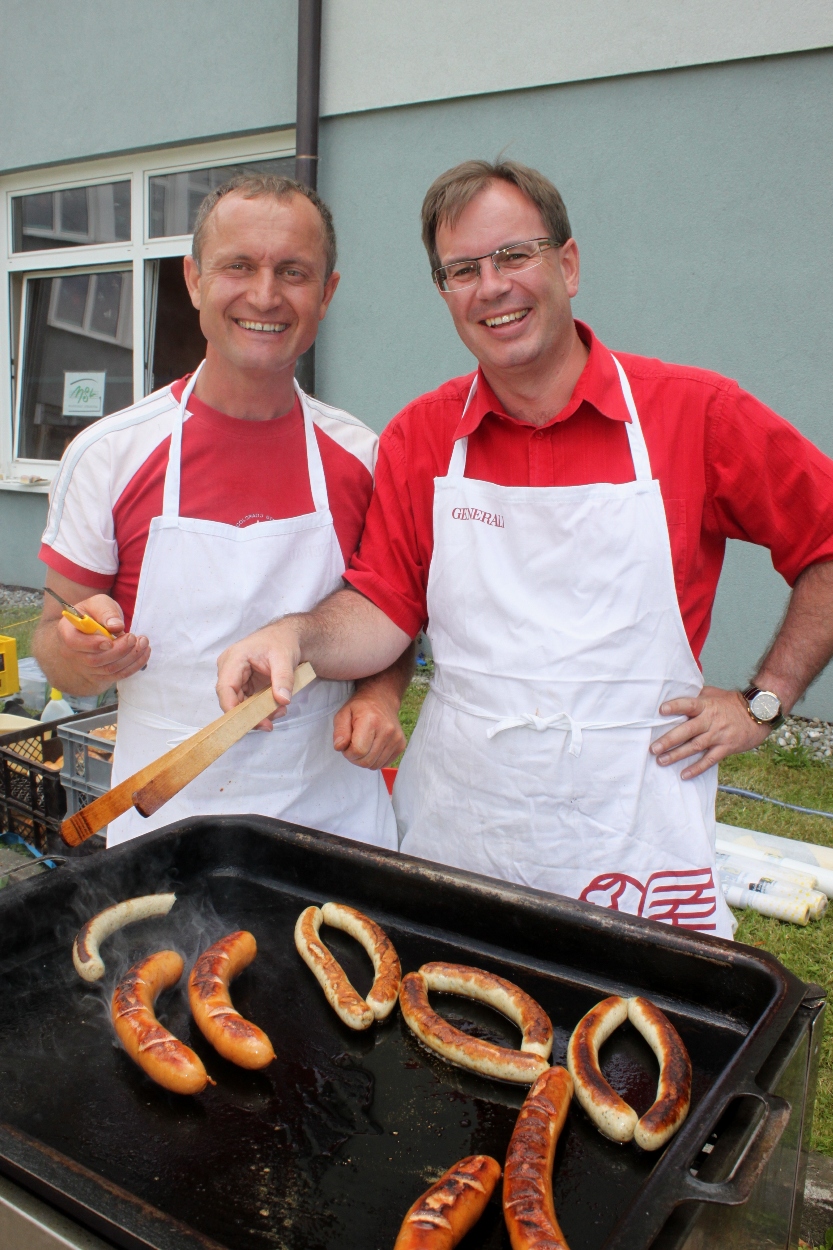Grillmeister Franz Rädler und Andreas Freis vom Elternverein