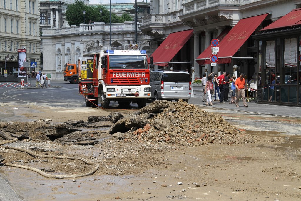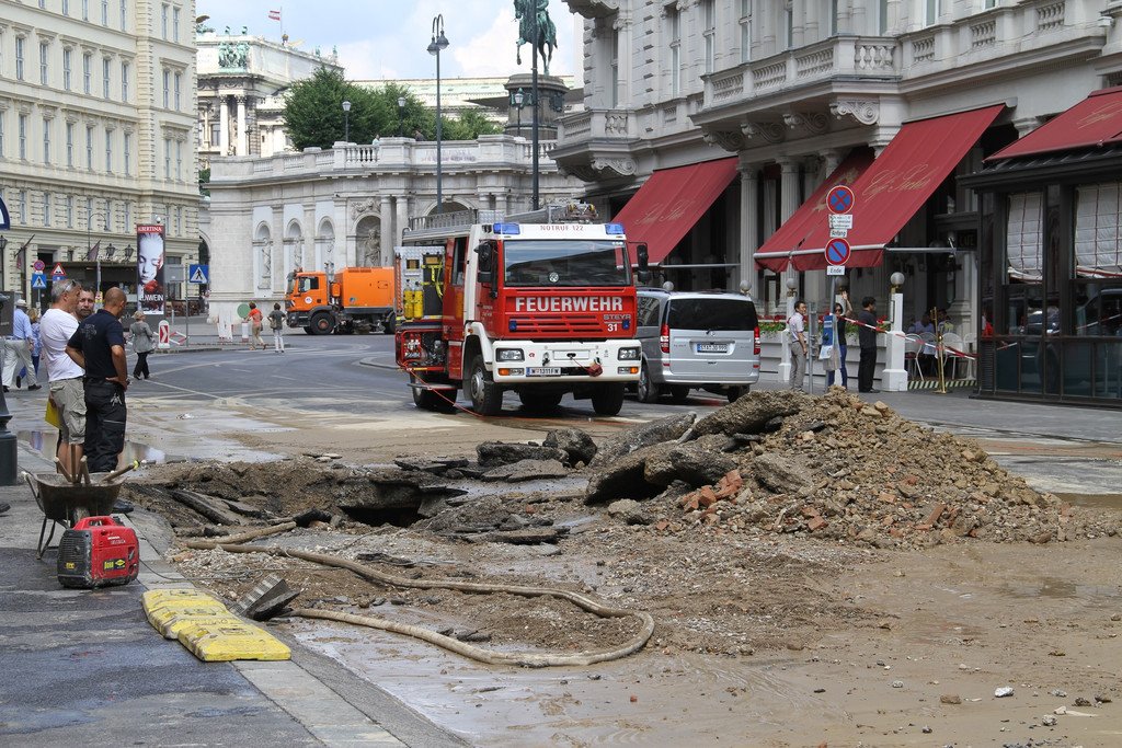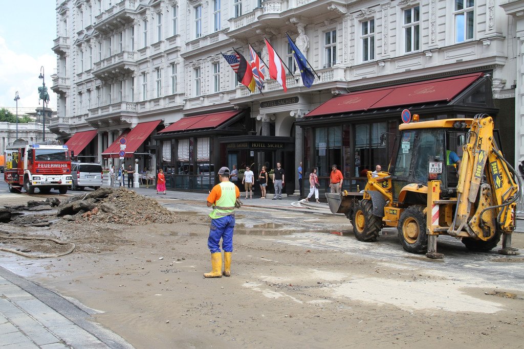Wasserrohrbruch vor dem Hotel Sacher in der Wiener Innenstadt
