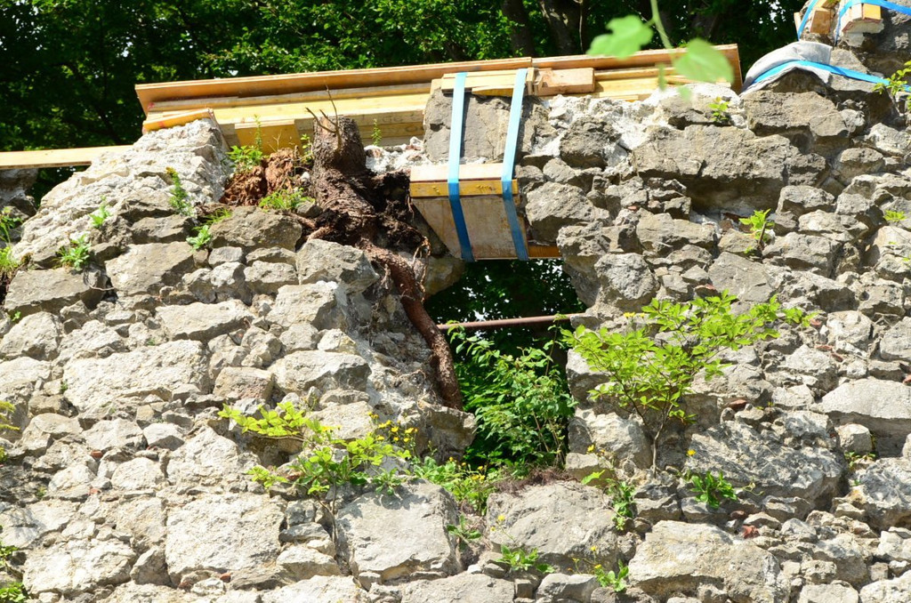 Die Renovierung war hoch an der Zeit, nur noch eine Wurzel stabilisierte diesen Teil der Mauer.