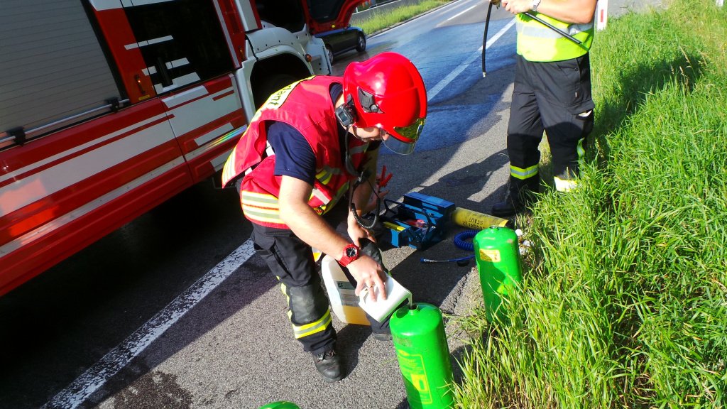 Schadstoffeinsatz der Feuerwehr auf der S6 in Niederösterreich