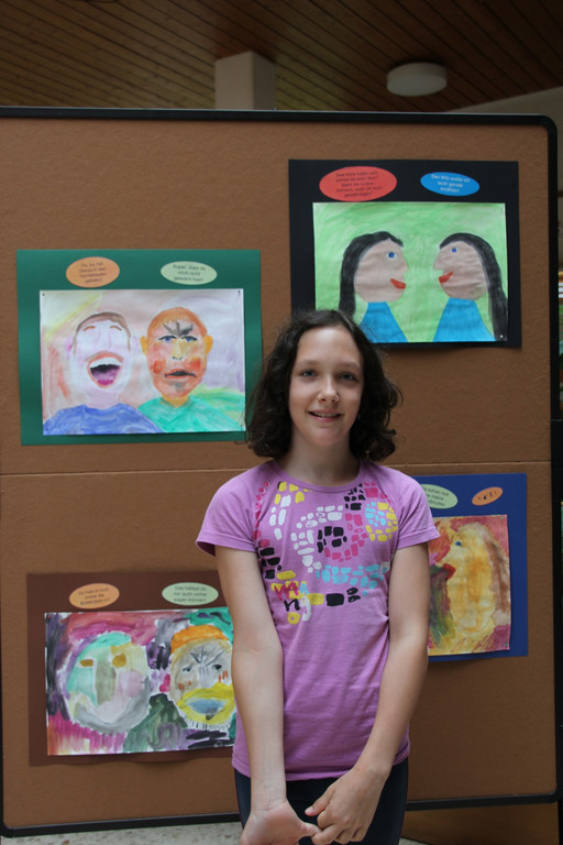 Vivien vor den fertigen Kunstwerken
