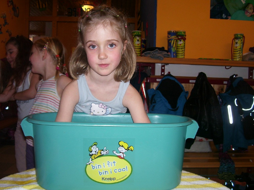 Die Kinder genießen die Kneippanwendungen.