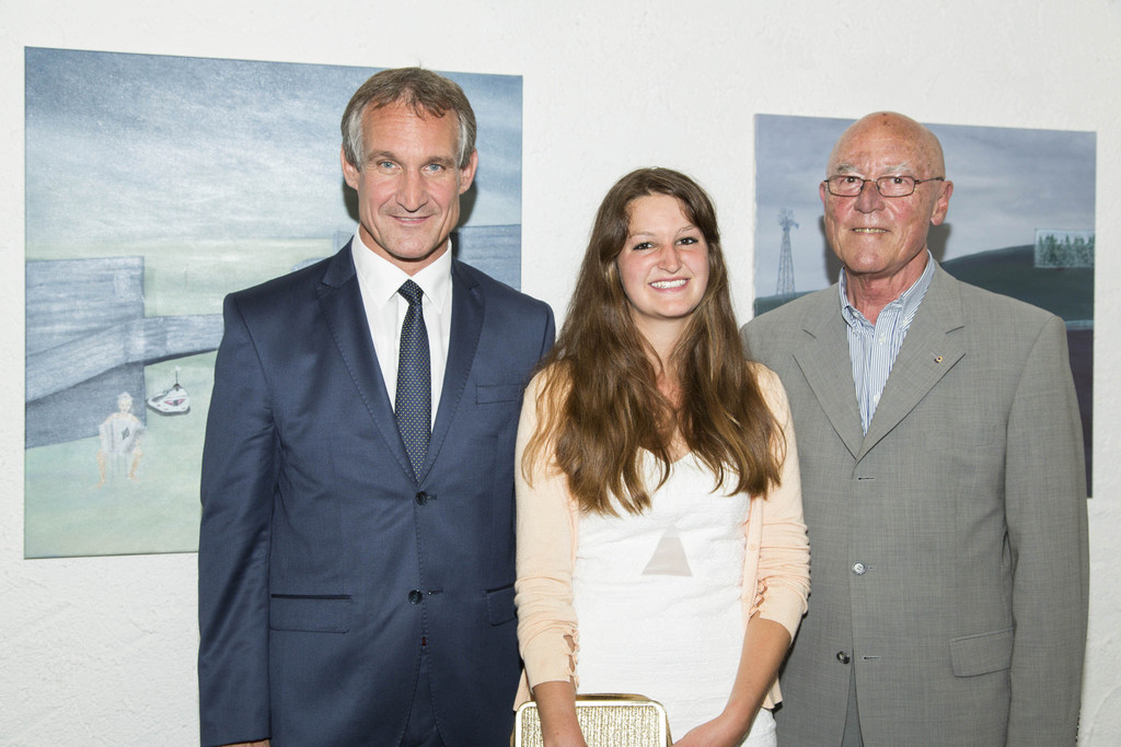 Sarah Bechter mit Bürgermeister Markus Linhart und Lions-Club-Präsdent Anton Salzmann.