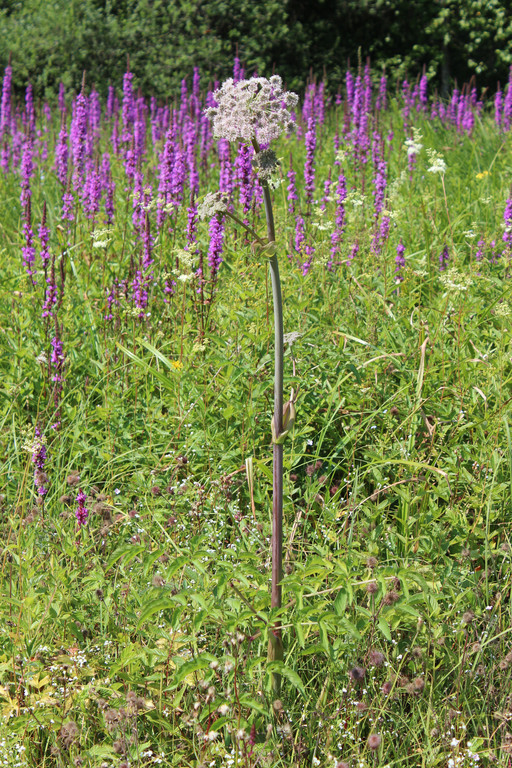 Eine Engelwurz vor Blutweiderichen.