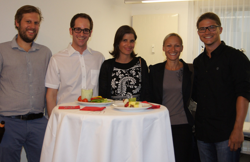 Dr. Grabher und Marion mit Architekt Stephan Grabher und Dr. Marc Sohm mit Nina Ruschitzka.