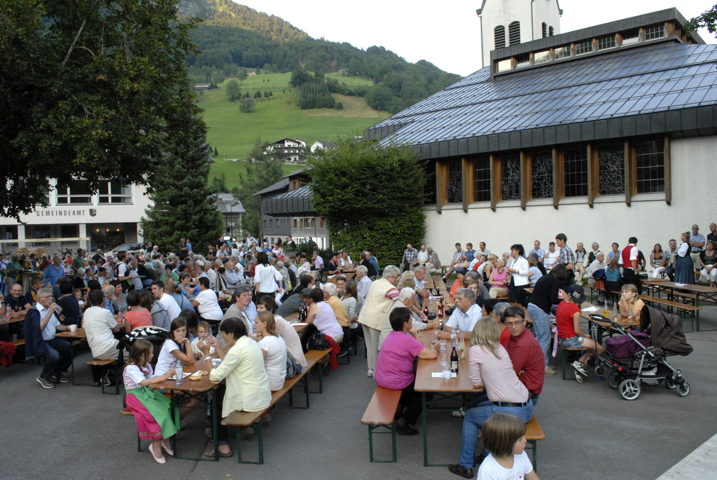 Bezauer Dorfmusikanten, Trachtengruppe Mellau, Trachtengruppe Vandans, Dorfplatz Mellau