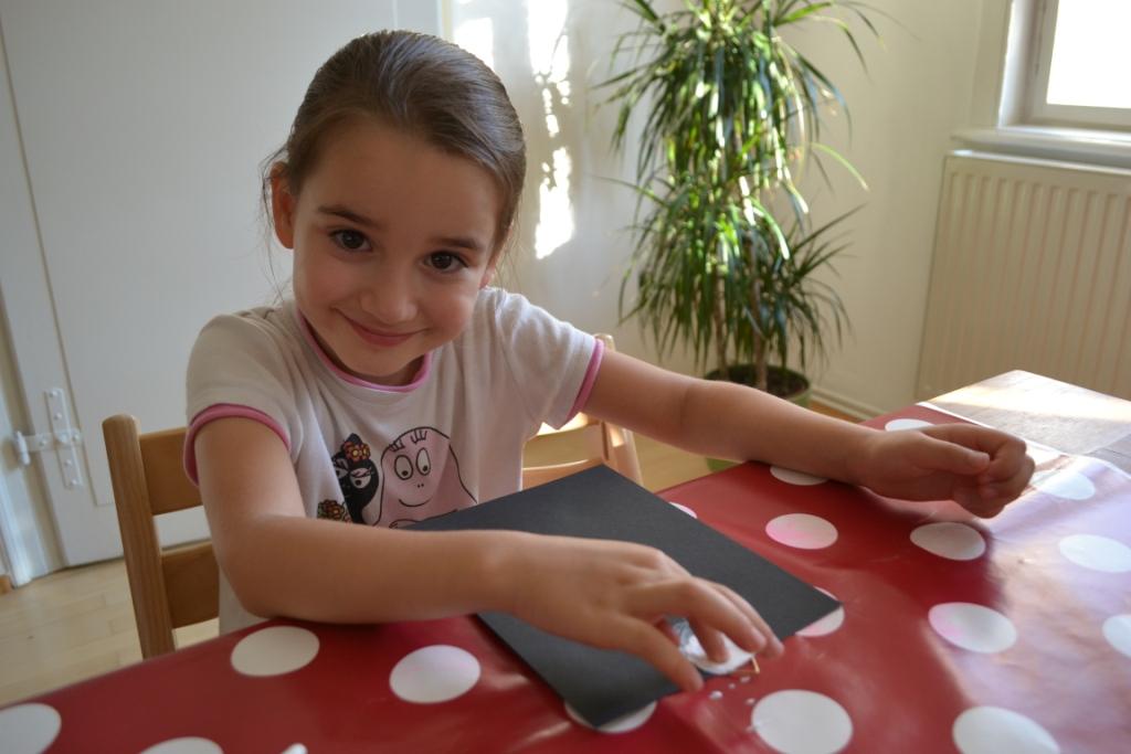 Nina bastelt einen Muschelbilderrahmen