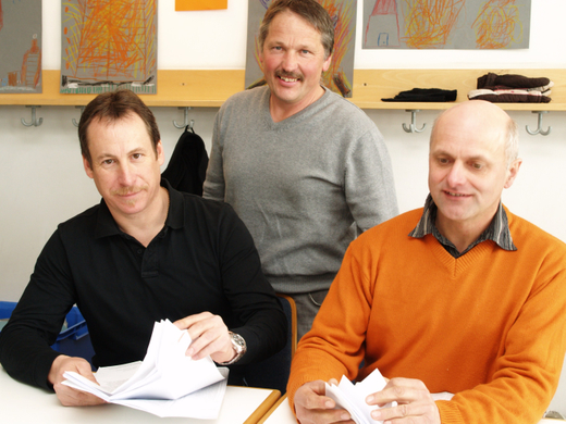 Manfred Mathis, Ewald und Artur Marte bei der Stimmauszählung