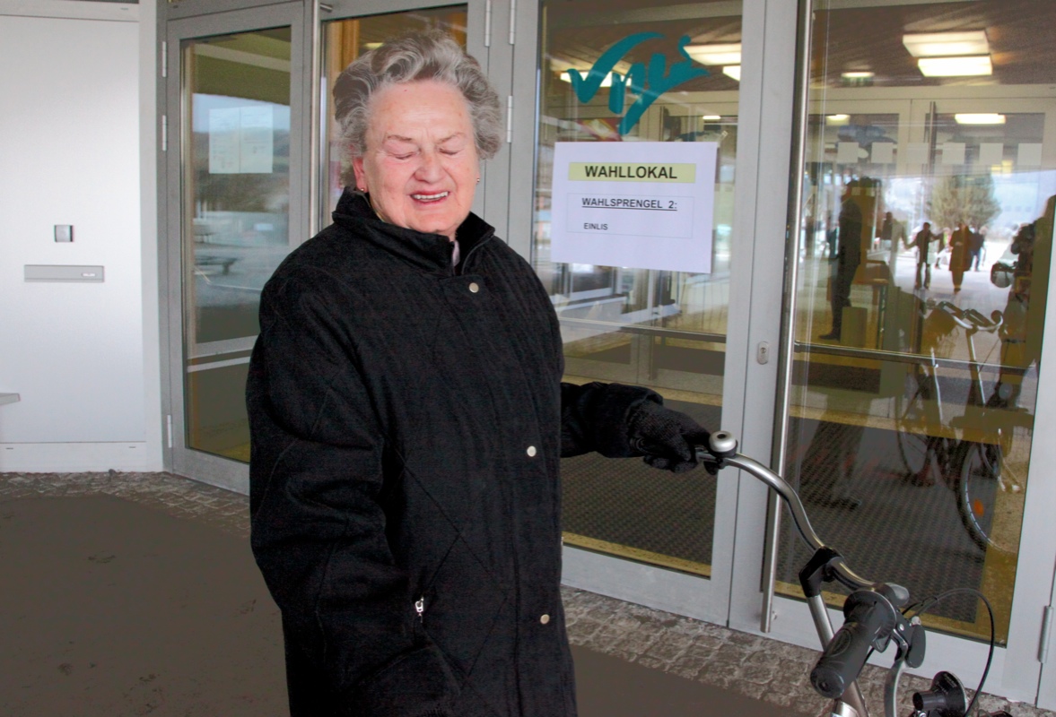 "Nicht nur Schimpfen, sondern auch zur Wahl gehen", meinte Erika, Mutter von Ex-Bundeskanzler Hubert Gorbach und war sogar bei den heutigen Wintertemperaturen mit dem Fahrrad zur VMS gekommen.