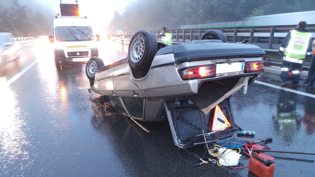 Unfall auf der A2: Pkw überschlug sich auf der nassen Fahrbahn