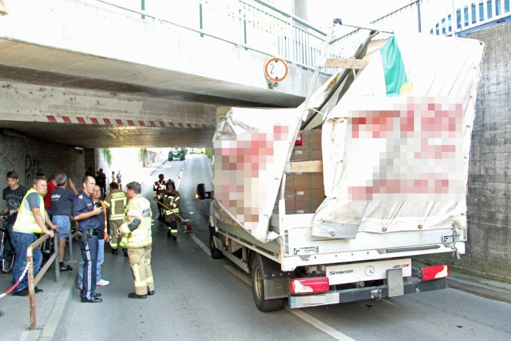 Kleintransporter blieb in Unterführung hängen