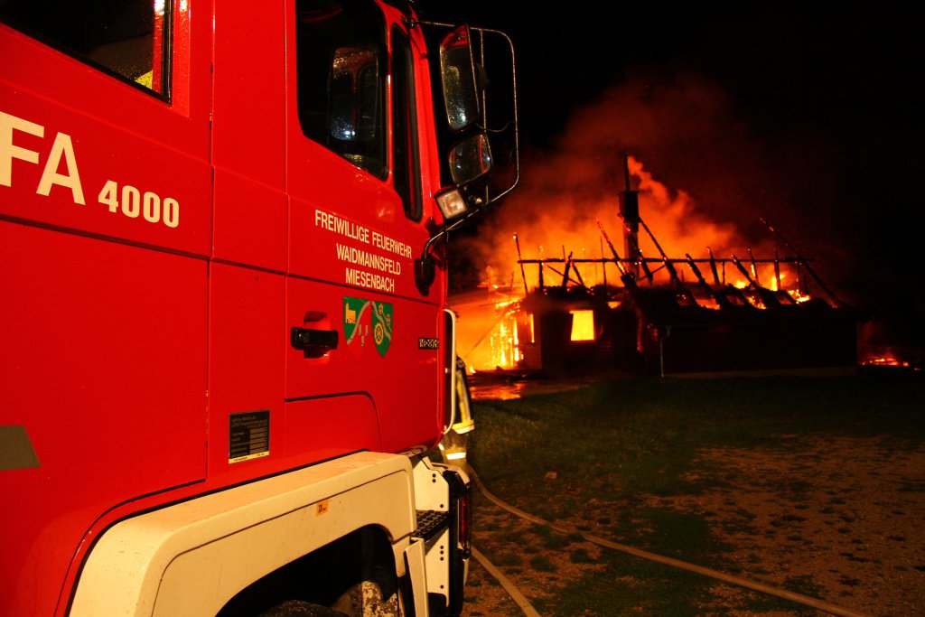 Großeinsatz bei Vollbrand der Scheimhütte auf der Hohen Wand