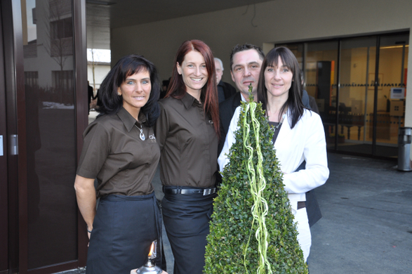 (v.l.) Servicekraefte Marion und Sandra mit Friedrich und Manuela Brugger.