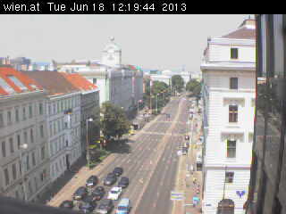 Blick entlang der Landesgerichtsstraße, der Grenze zwischen dem 1.Bezirk (rechts) und dem 8.Bezirk (links). Webcam auf ca. 200 Meter Seehöhe. (www.wien.gv.at)