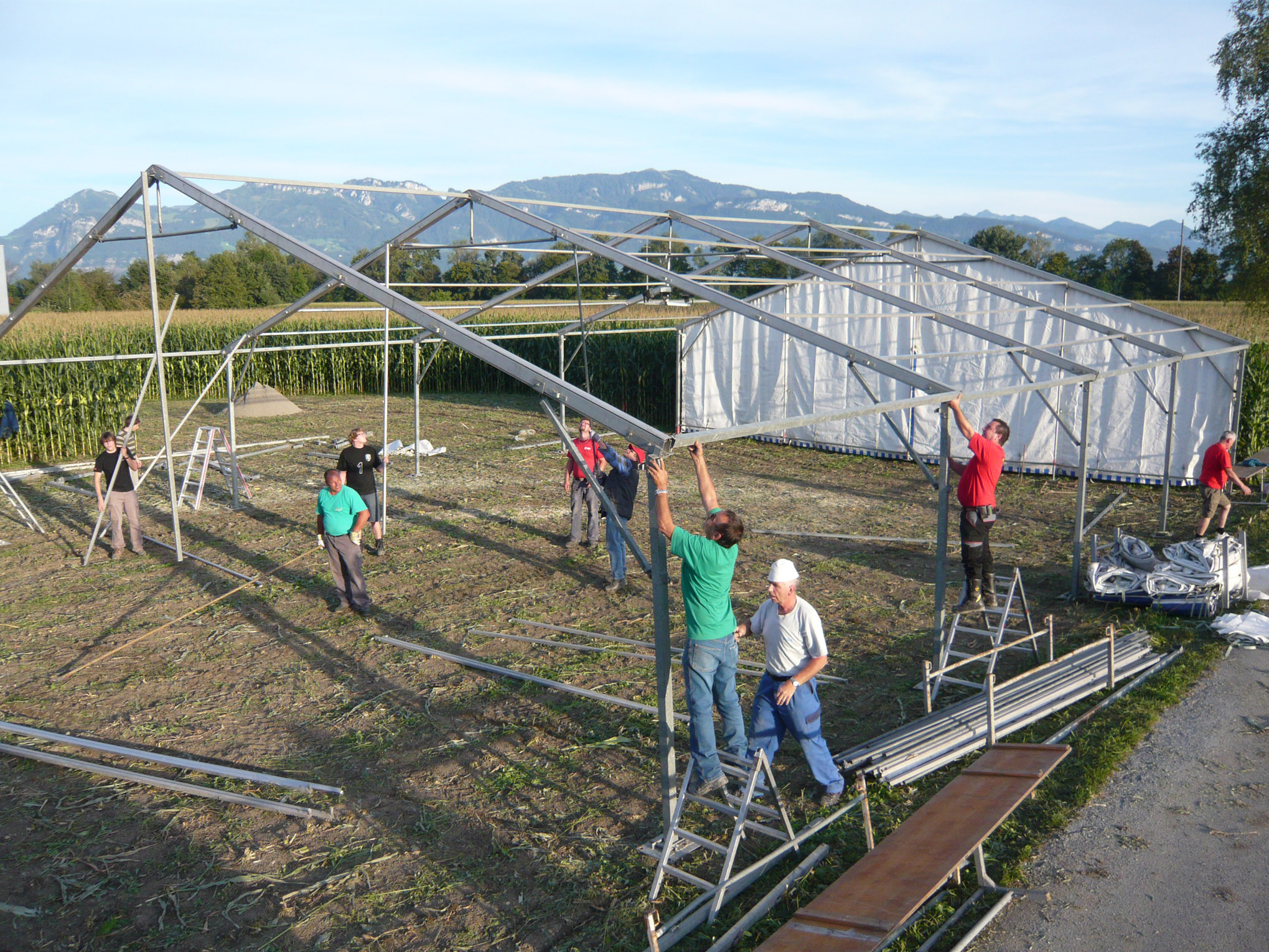 Zeltaufbau mitten im Törggafeld