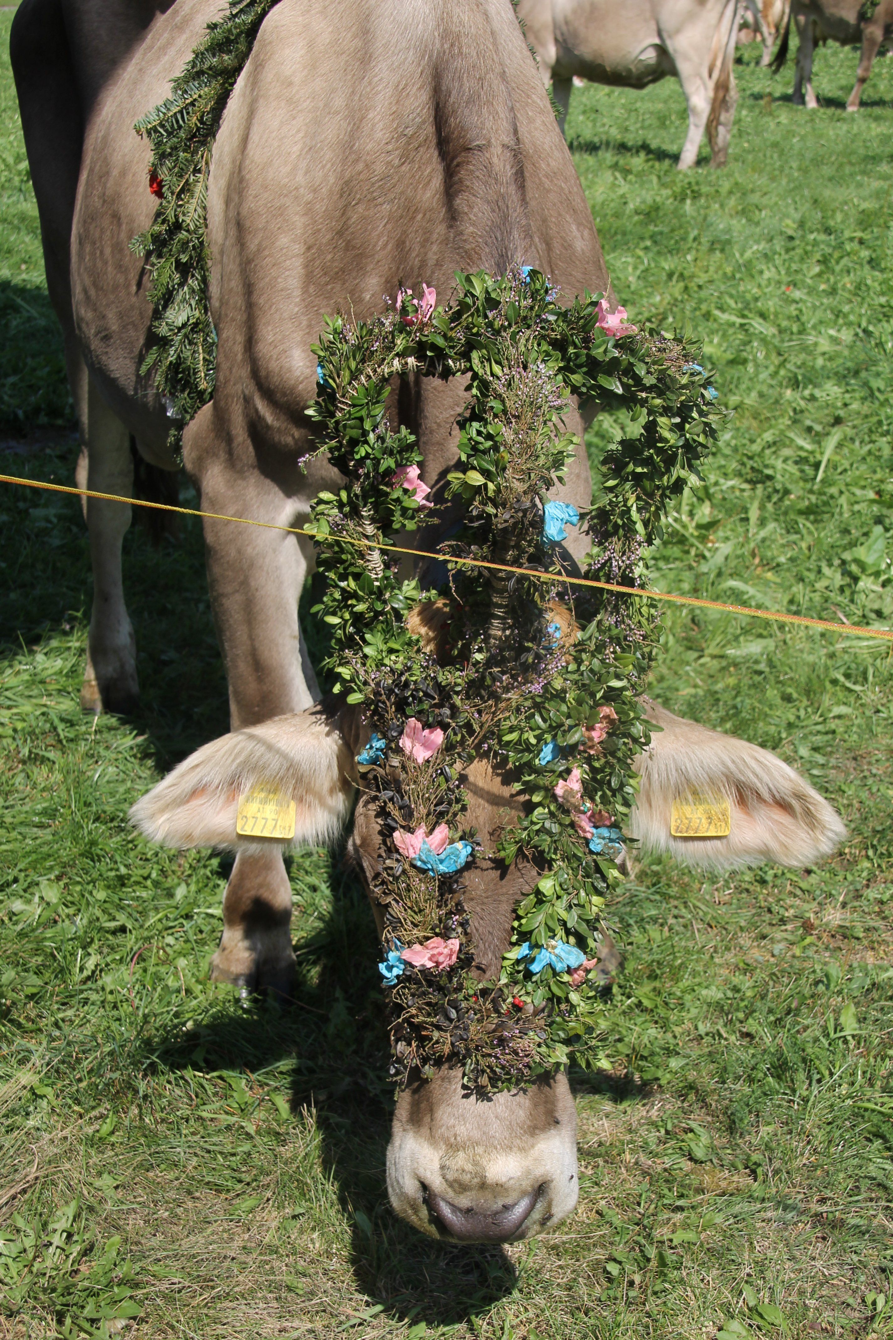 Bunt geschmückte Kuh von der Gulmalp.