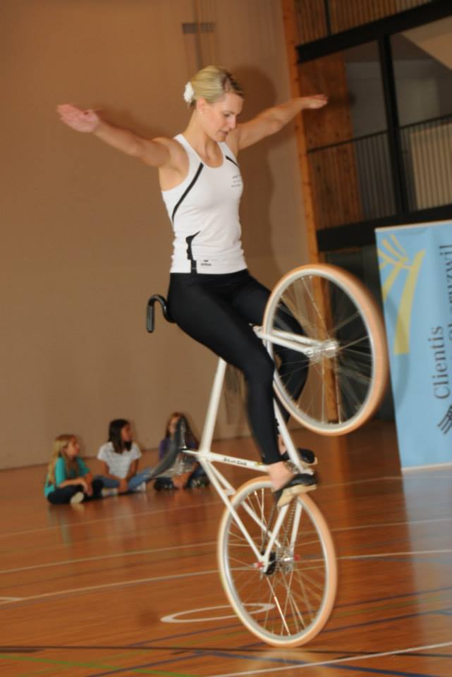 Kunstradfahrer in Hochform