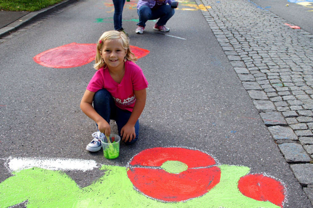 Marielle (7) beim Bemalen der Strasse