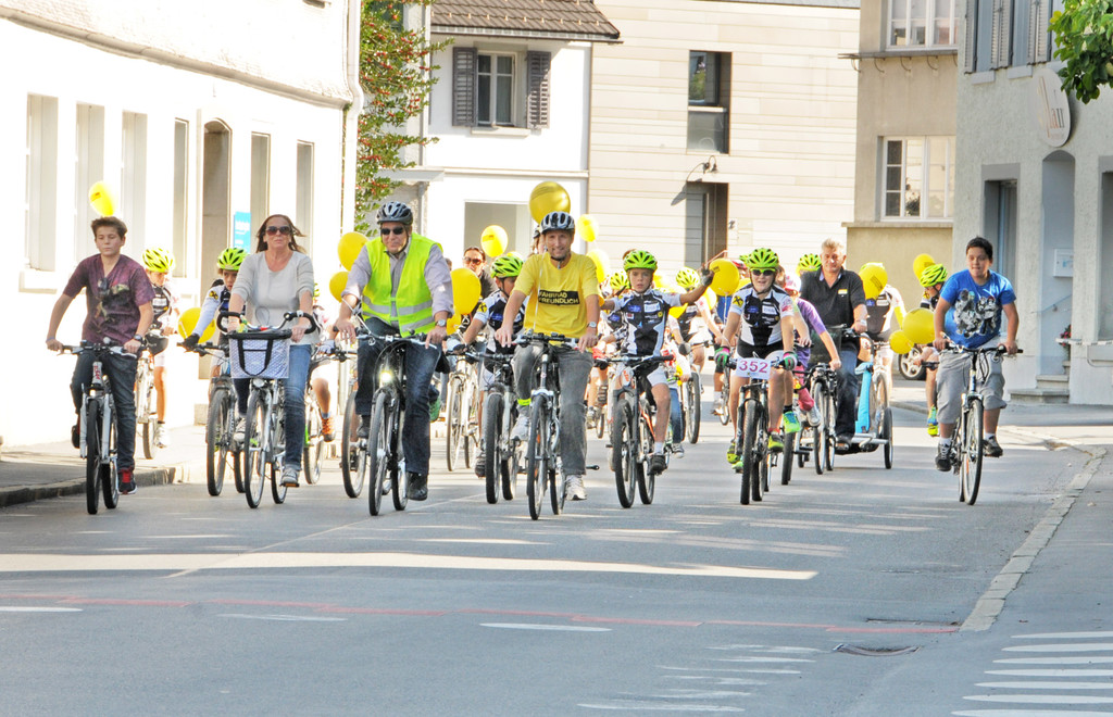 Fahrradparade mit Ziel in Hard