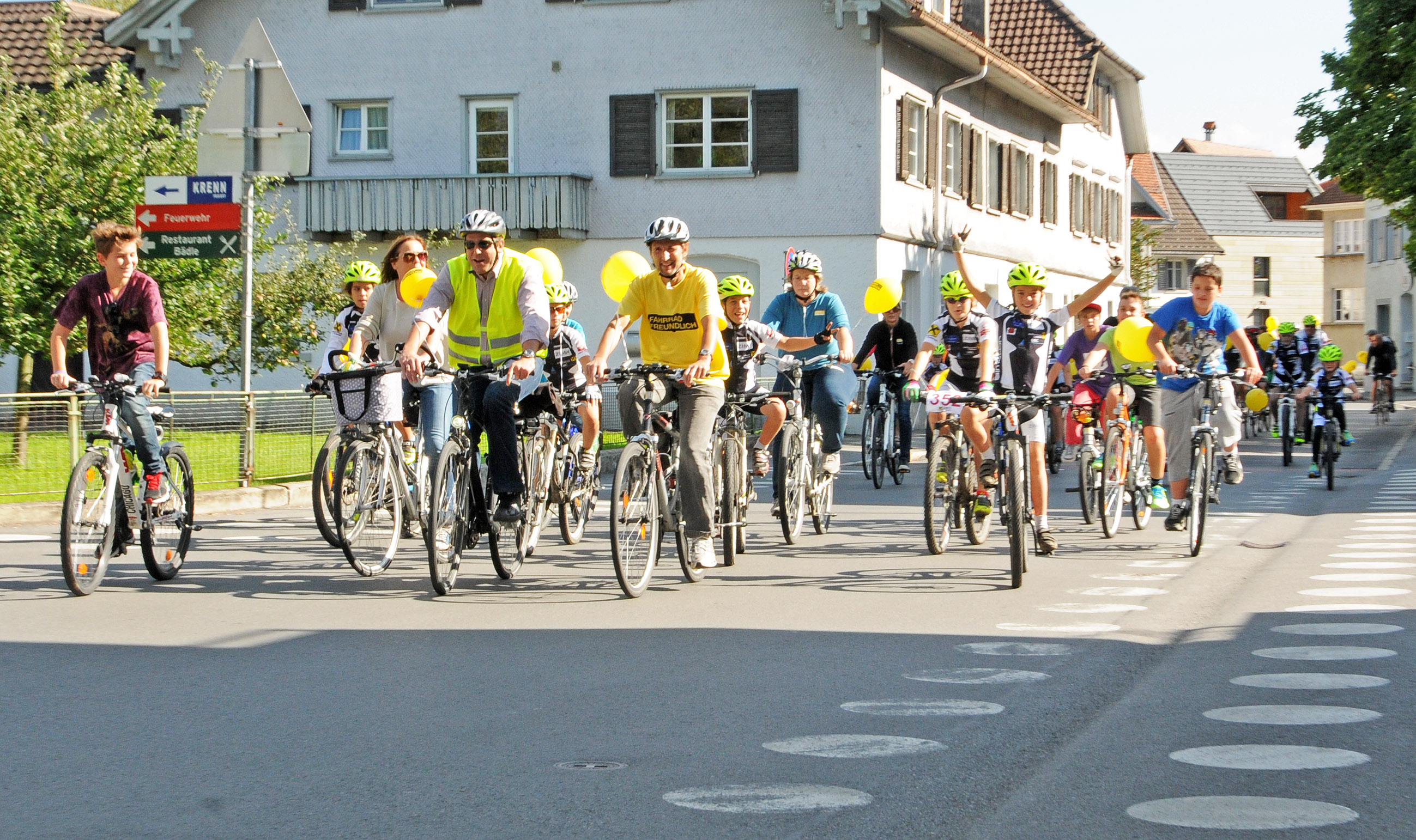 Fahrradparade mit Ziel in Hard