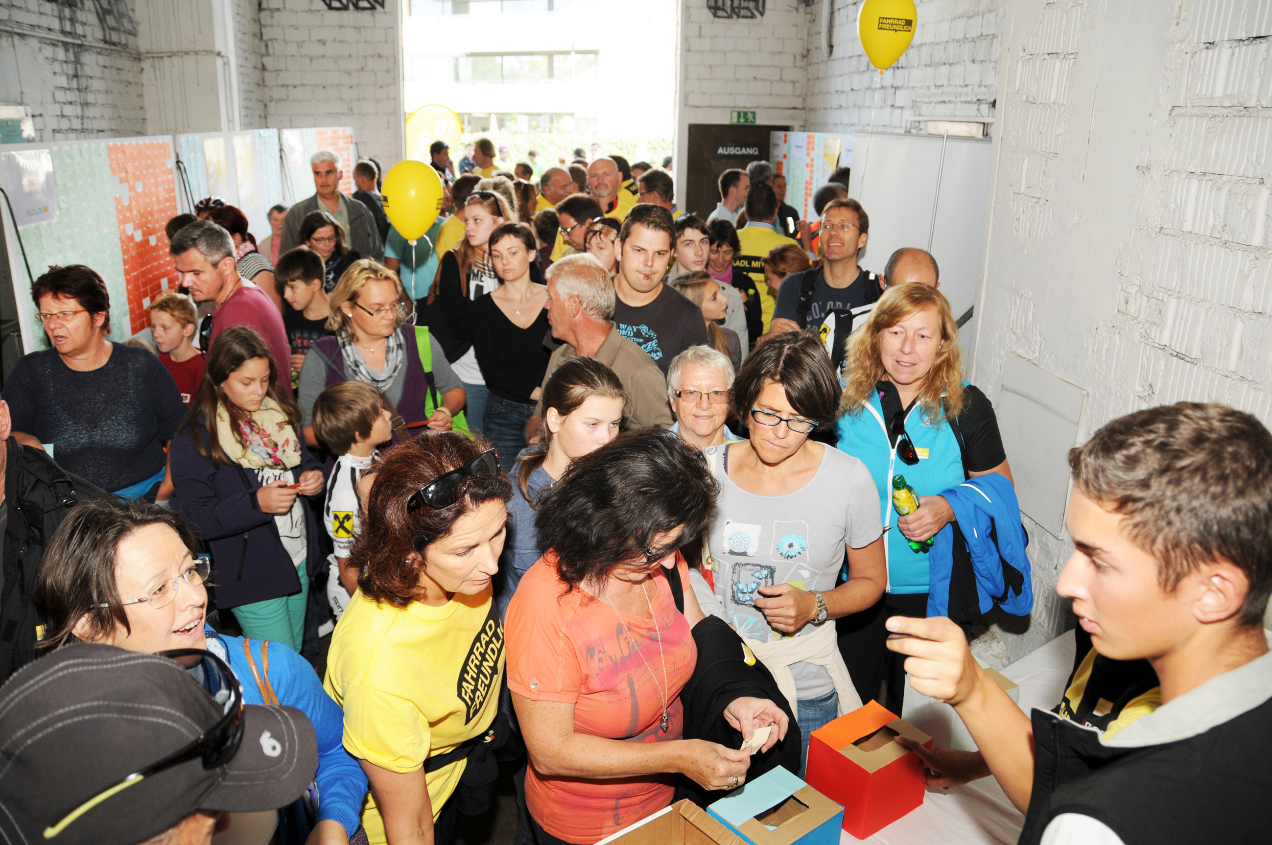 Fahrradparade mit Ziel in Hard