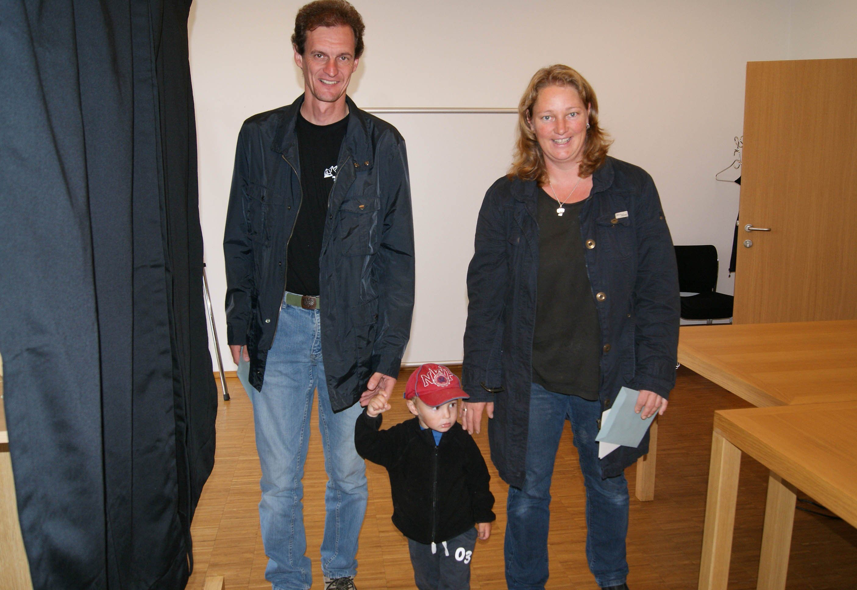 Groß und Klein im Wahllokal