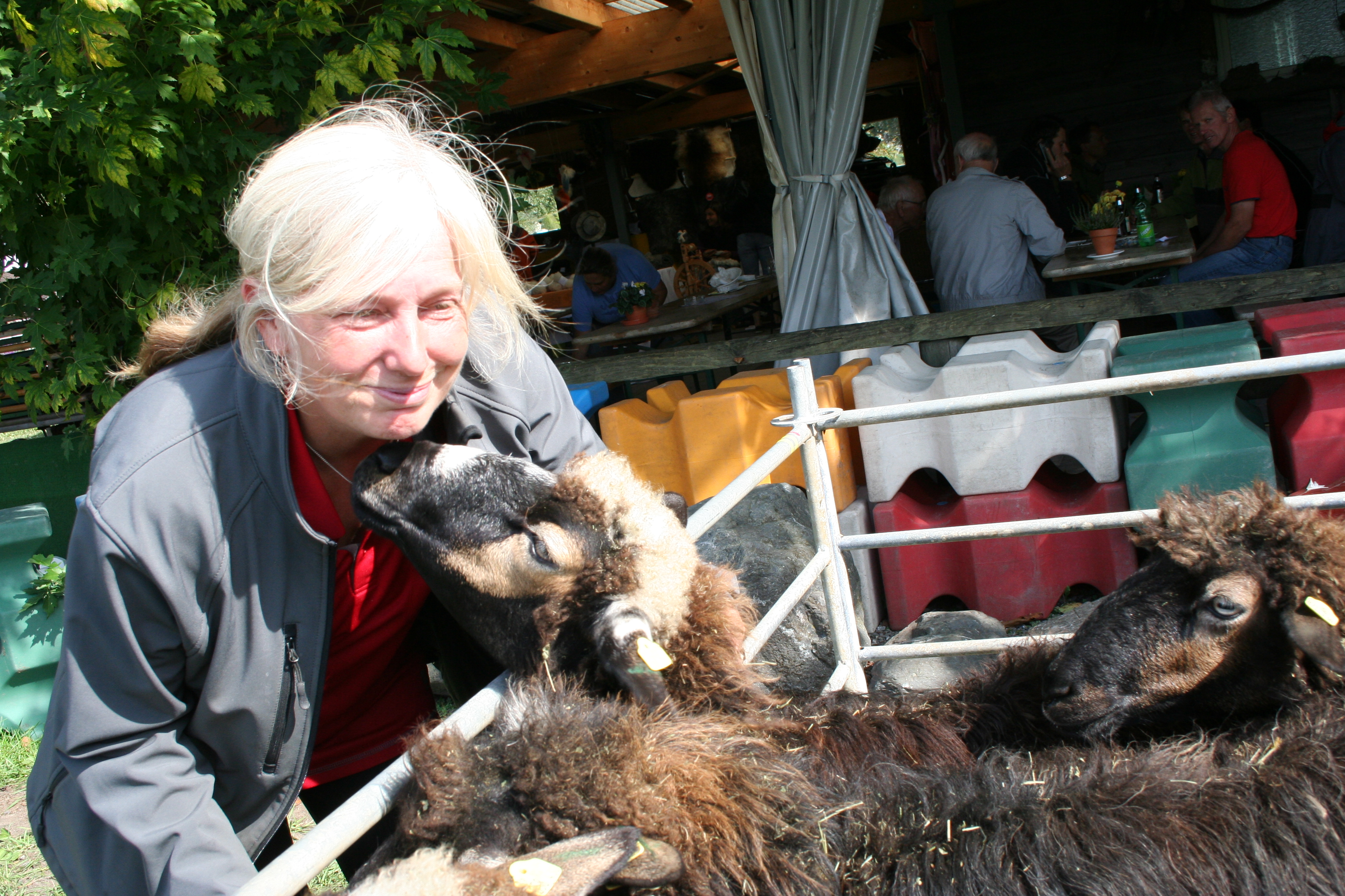 Lucie, das Schaf, mit "Ziehmama" Irene.