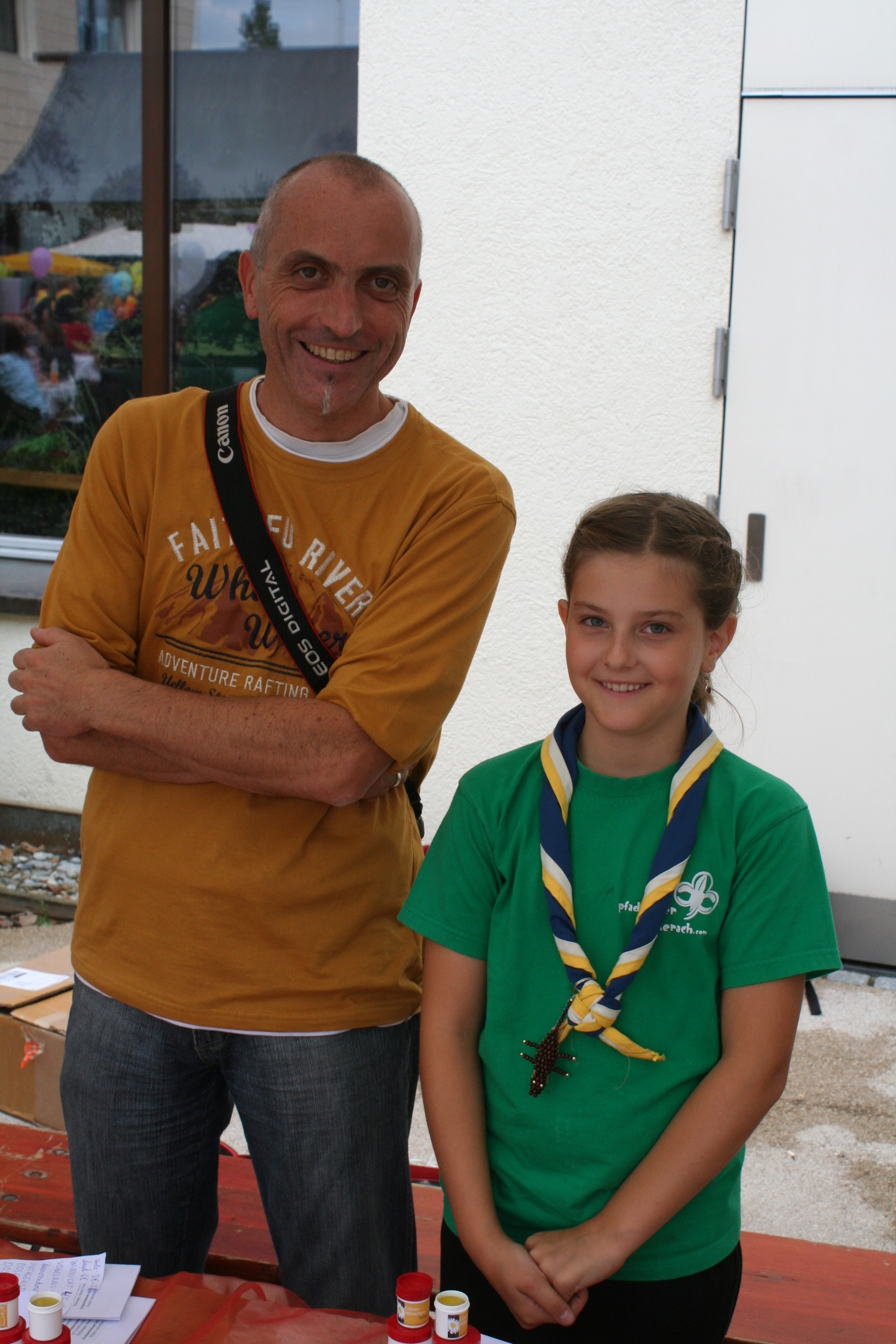 Hannes und Nina brachten Selbstgebasteltes von den Pfadfindern an den Mann